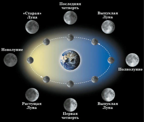 Фазы Луны схема фаз