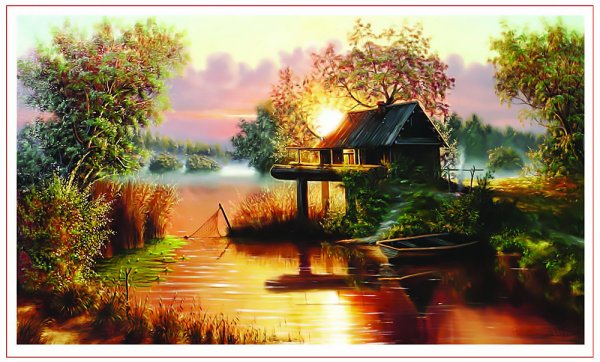 ![Домик у озера живопись]()