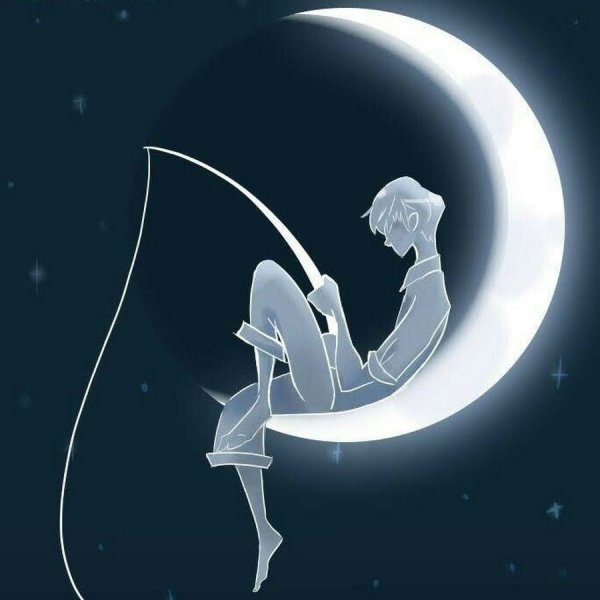 Мальчик на Луне с удочкой рисунок
