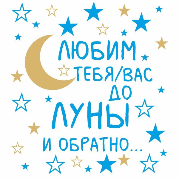 Люблю тебя до Луны и обратно надпись