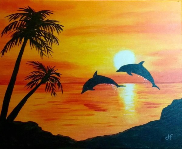 ![Пейзаж с дельфинами]()