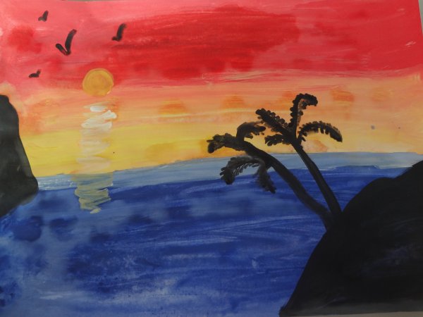 ![Закат красками для детей]()
