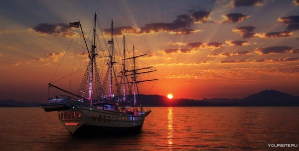 Представьте себя на борту величественного корабля, плывущего сквозь бурные волны в оранжево-розовом свете заката. Морской бриз ласкает лицо, а солнце медленно погружается за горизонт, окрашивая небо в яркие оттенки. Вдали виднеется контур берега, а чайки кружатся в воздухе, создавая неповторимую картину природы и свободы. Невероятное зрелище, которое заставляет сердце биться быстрее и дарит ощущение полной гармонии с окружающим миром.