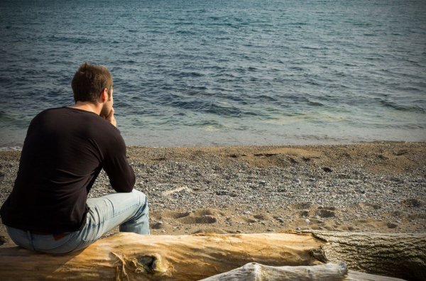 Человек сидит на берегу