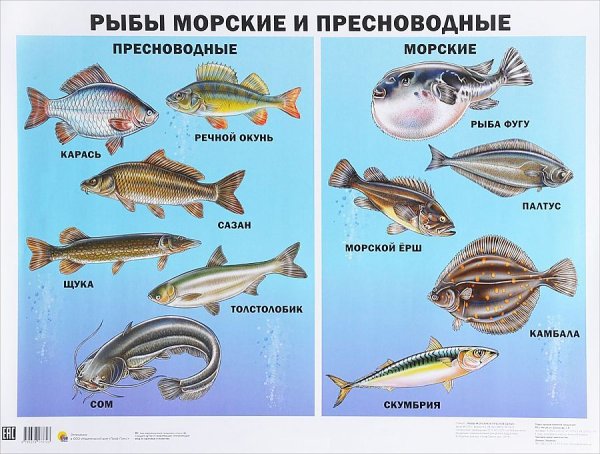 Плакат рыбы морские и Пресноводные