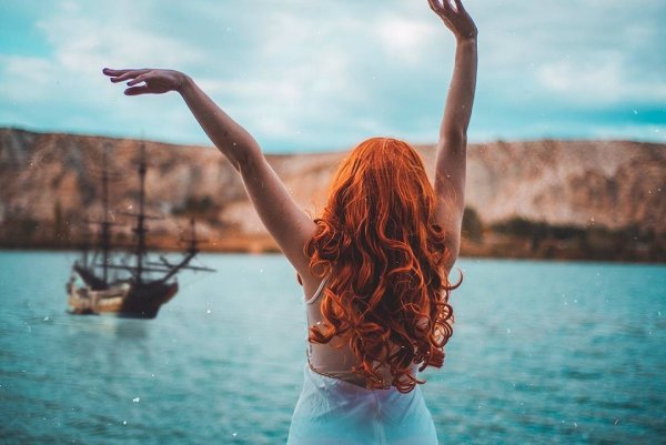 Рыжеволосая девушка на море