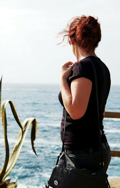 Рыжеволосая на море