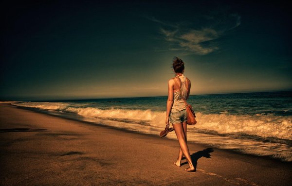 Девушка идет по берегу