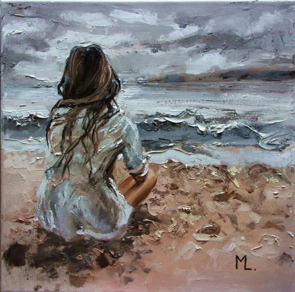 ![Девушка и море живопись]()