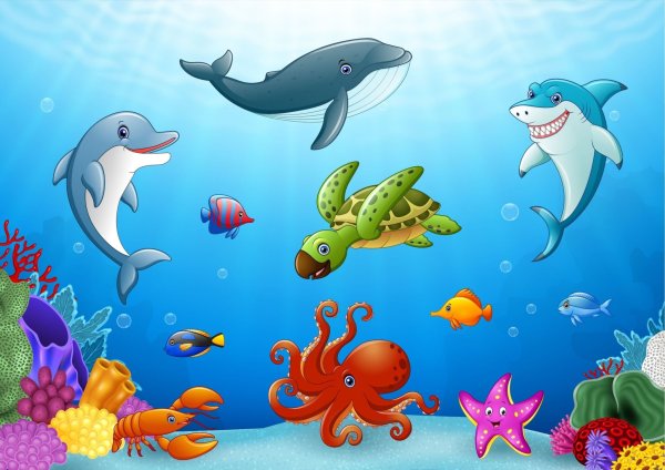 ![Морские обитатели для детей]()