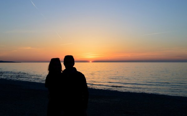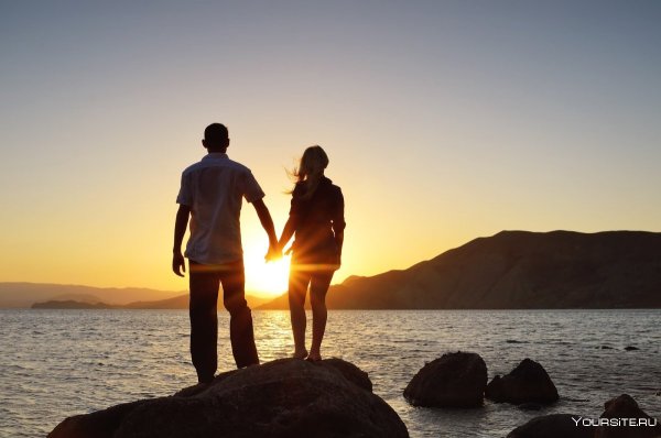 Двое на закате у моря