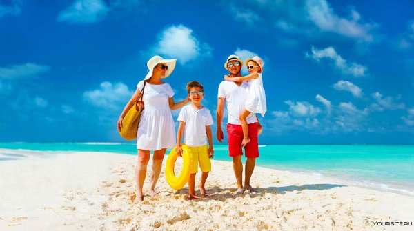 Семья 4 человека на море