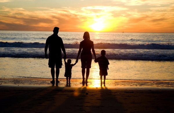 Семья море закат