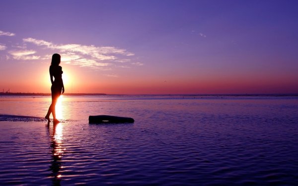 Силуэт девушки на берегу моря