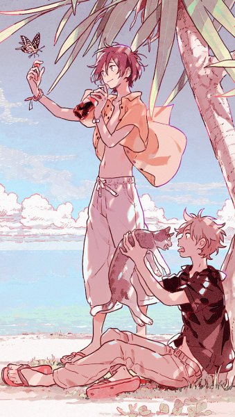 Незнакомец на берегу моря аниме коты