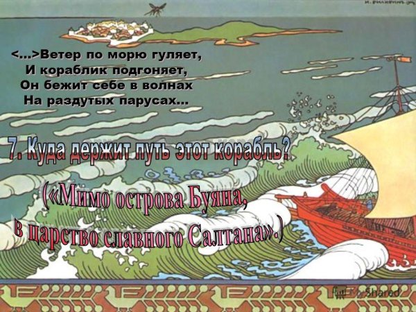 ![Ветер весело шумит, судно весело бежит мимо острова Буяна]()