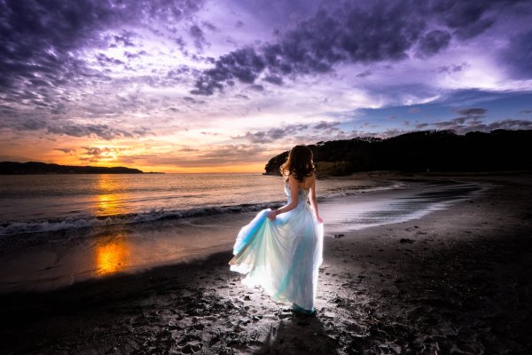 Девушка на берегу океана закат