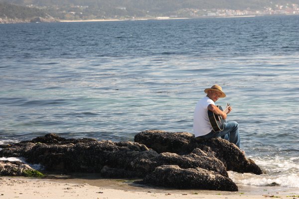 На картинке изображено море, на фоне которого стоит уединенный человек с гитарой в руках. Синяя бескрайняя гладь океана и звуки прибоя создают неповторимую атмосферу вдохновения и спокойствия. Музыкант погружен в мелодии, словно сливается с окружающей природой, исполняя свои произведения под аккомпанемент шума волн. Эта картина символизирует гармонию человека с природой, музыки с окружающим миром, и позволяет зрителю почувствовать волны эмоций и звуков, переносясь в умиротворенное состояние благодаря этому великолепному сочетанию моря и гитары.