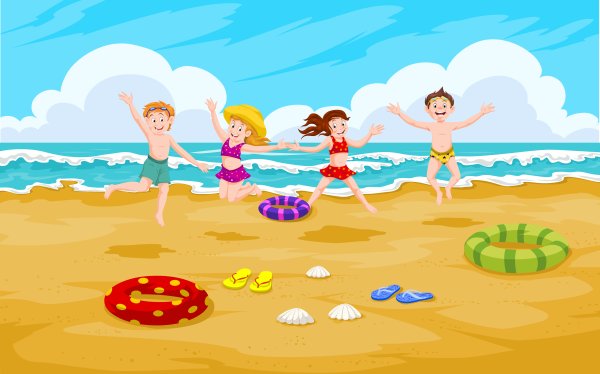 Дети на пляже мультяшная
