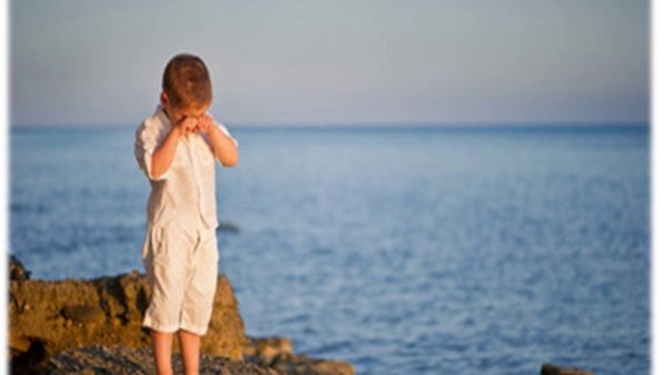 Мальчик плачет на берегу моря