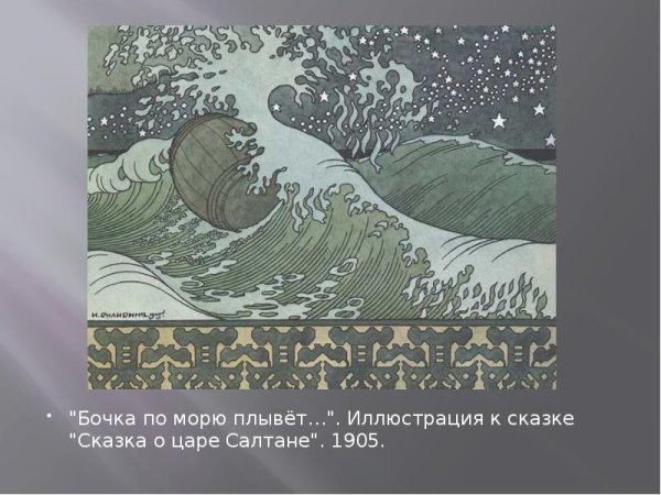 Иллюстрация Билибина бочка по морю плывет