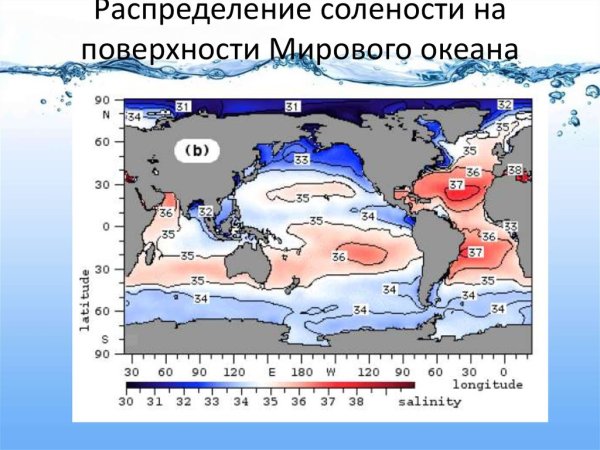 ![Среднегодовая соленость поверхностных вод мирового океана]()