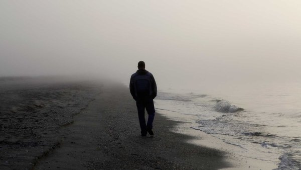 ![Одинокий человек на берегу]()