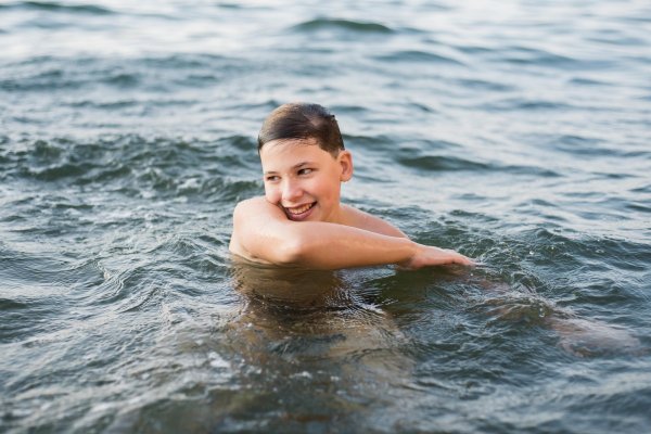 Мальчик купается в море