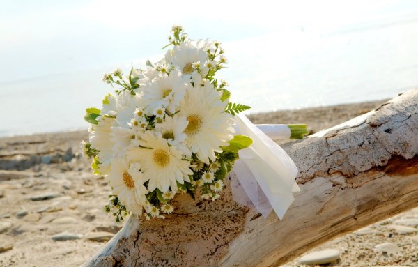 Букет ромашек на море