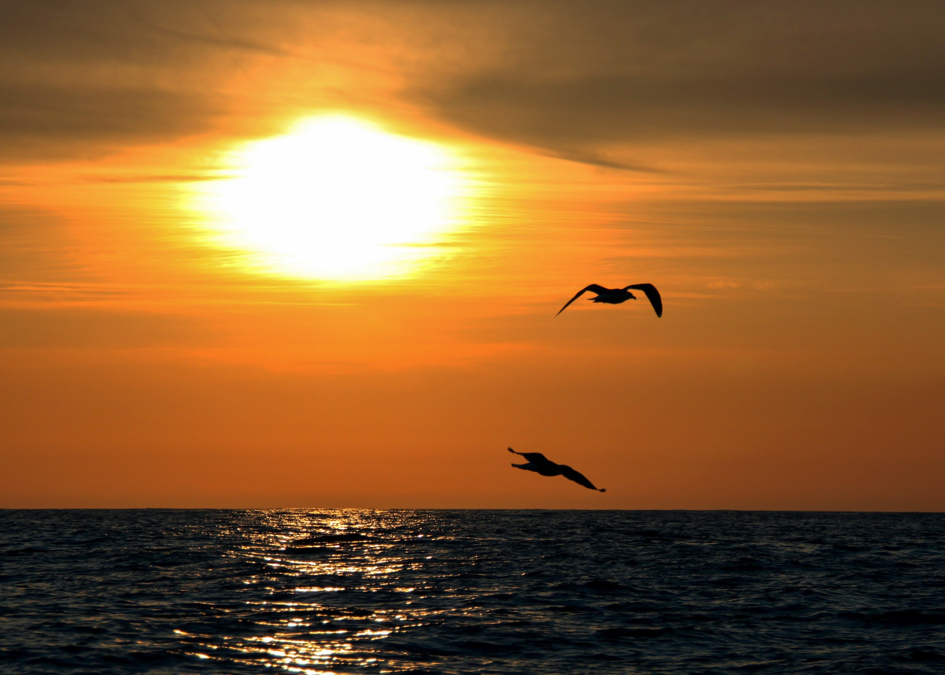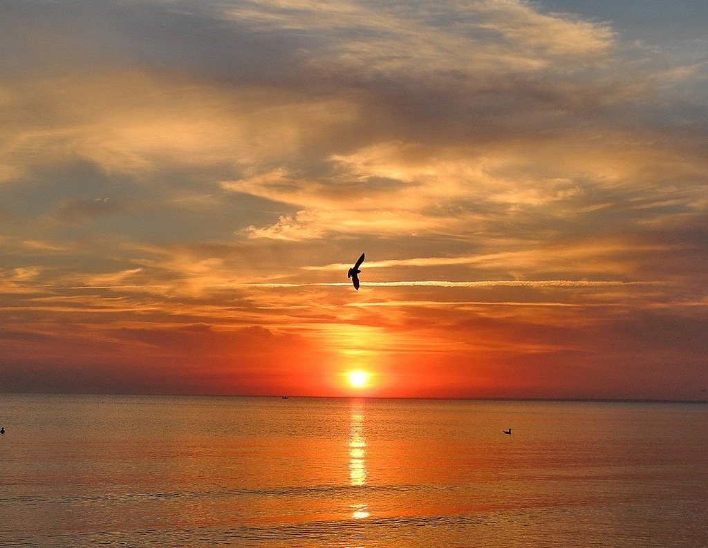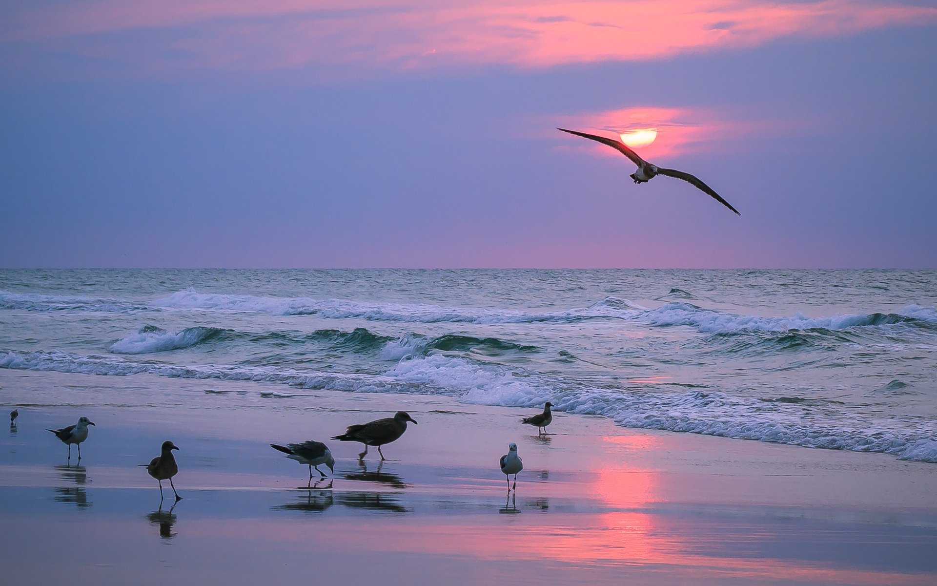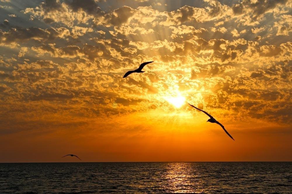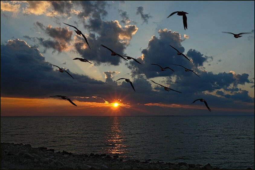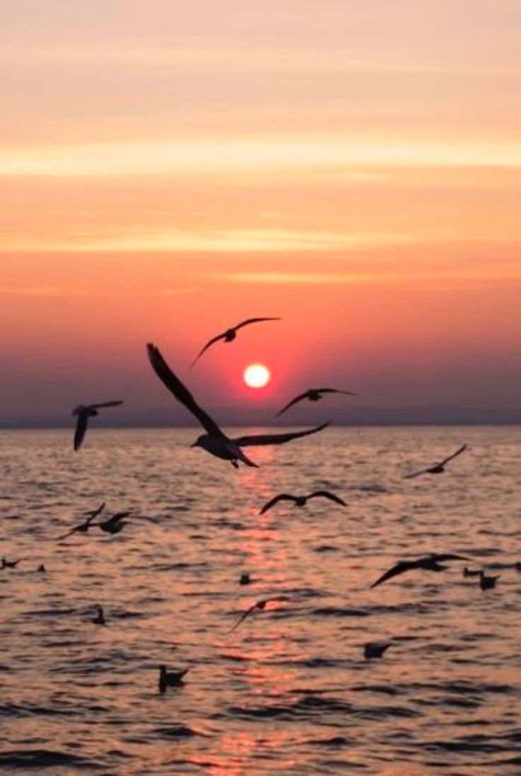 На картинке запечатлен волшебный закат над морем, окрашивающий небо в оттенки розового и оранжевого. Вдали виднеется контур птиц, парящих в воздухе, создавая красивый и живописный образ. Этот сюжет напоминает о спокойствии и красоте природы, оставляя ощущение умиротворения и восхищения перед величественным зрелищем. Картина морского заката с птицами - идеальное сочетание для тех, кто ценит красоту окружающего мира и хочет проникнуться атмосферой умиротворения и гармонии.
