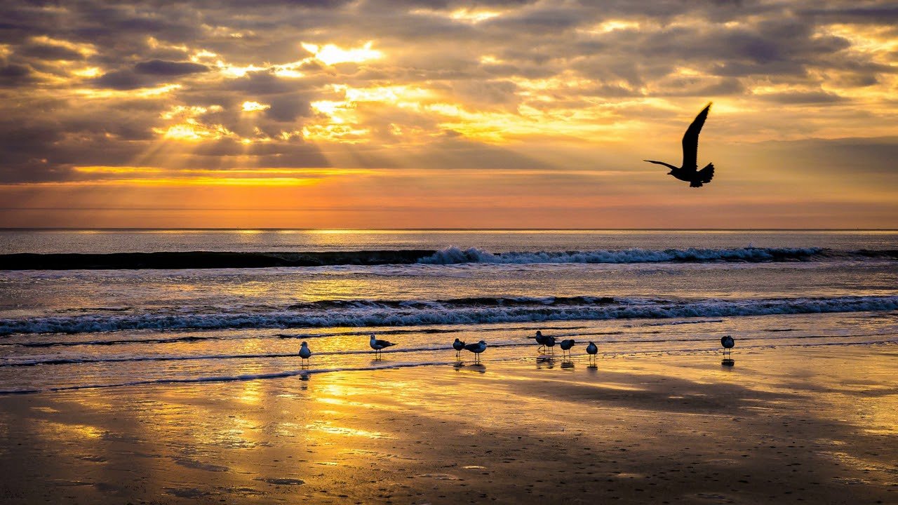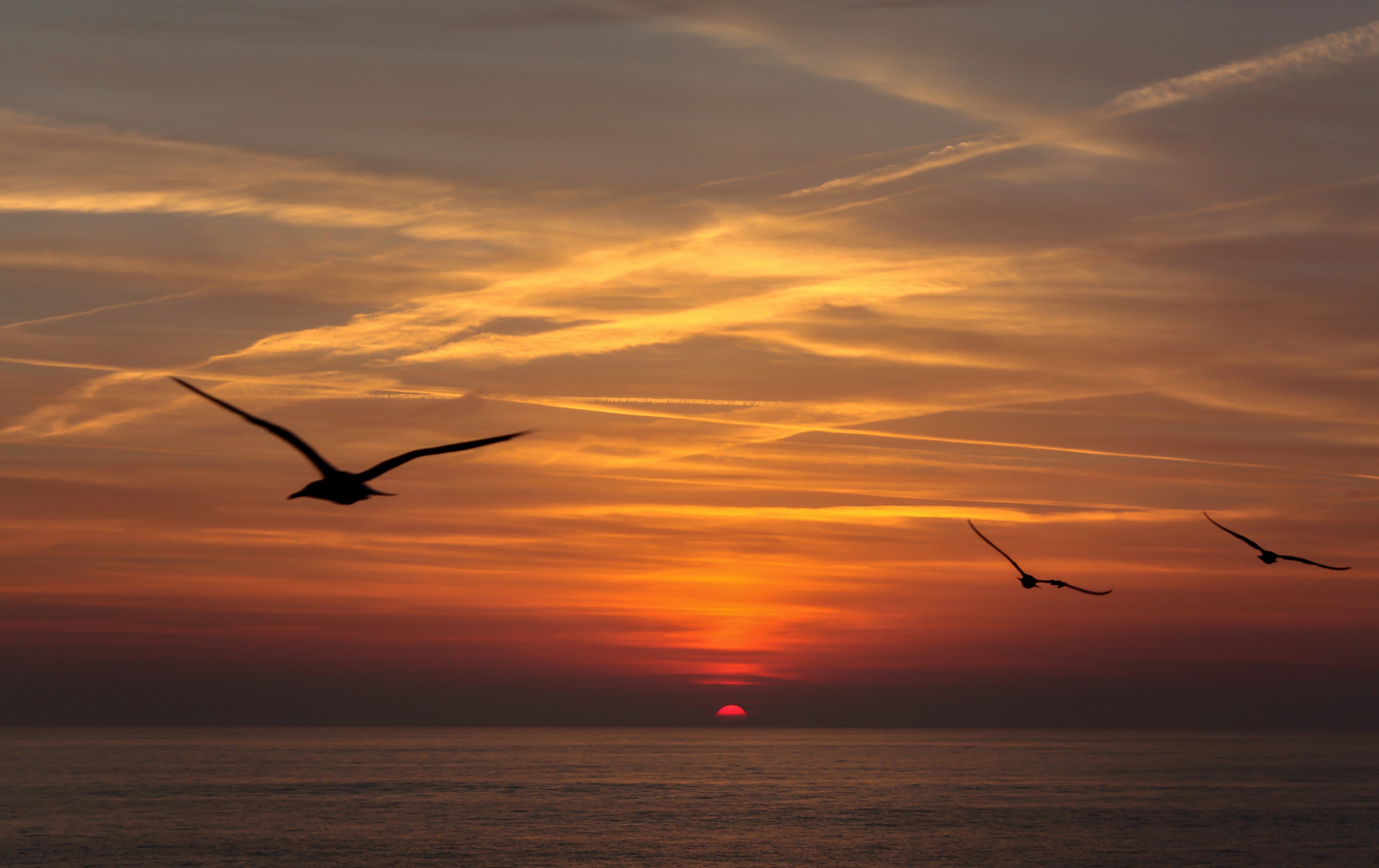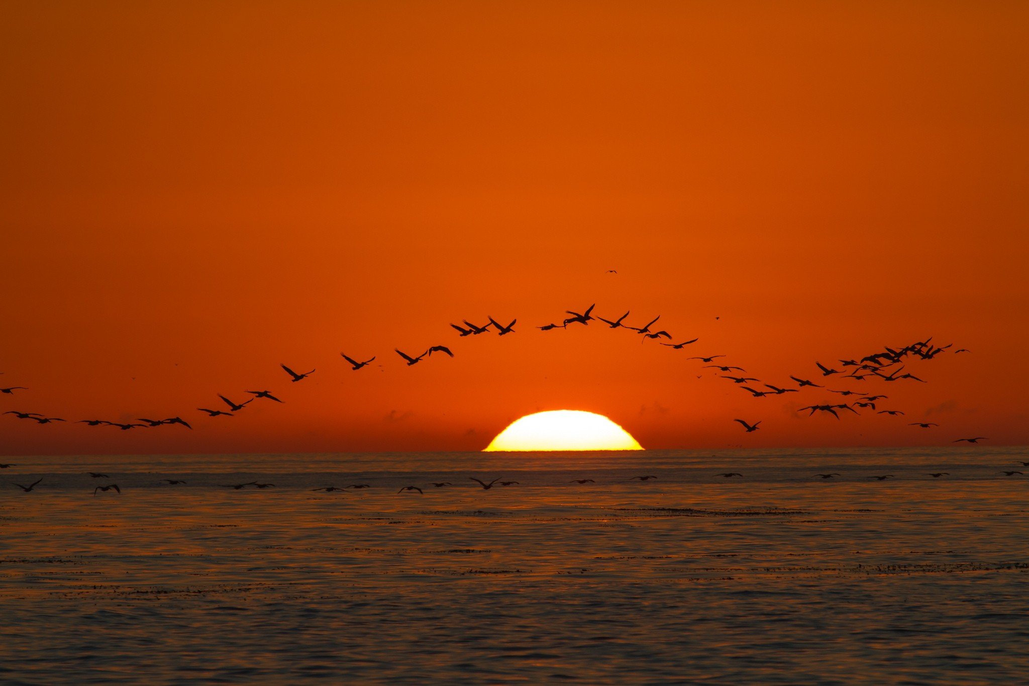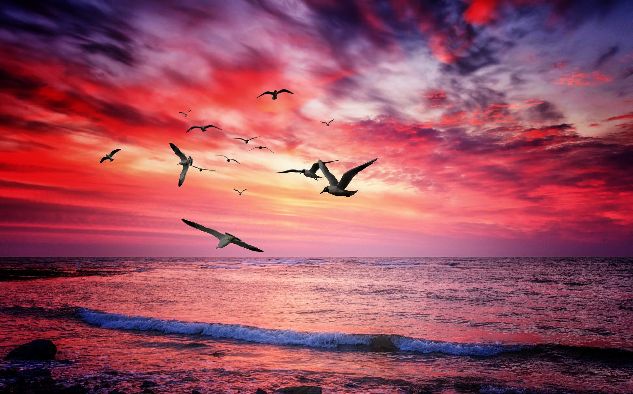 На картинке запечатлен волшебный закат над морем, окрашивающий небо в оттенки розового и оранжевого. Вдали виднеется контур птиц, парящих в воздухе, создавая красивый и живописный образ. Этот сюжет напоминает о спокойствии и красоте природы, оставляя ощущение умиротворения и восхищения перед величественным зрелищем. Картина морского заката с птицами - идеальное сочетание для тех, кто ценит красоту окружающего мира и хочет проникнуться атмосферой умиротворения и гармонии.