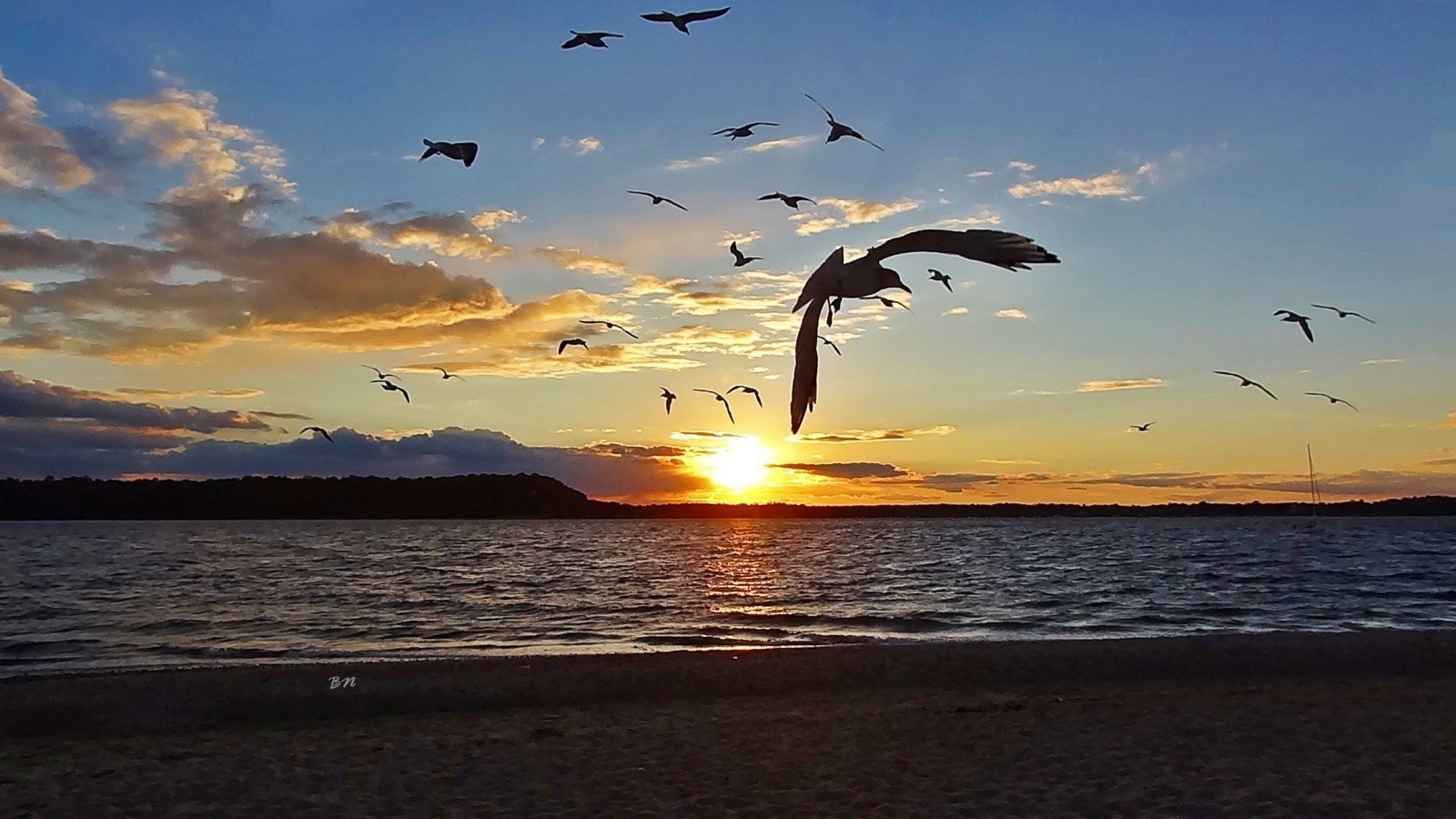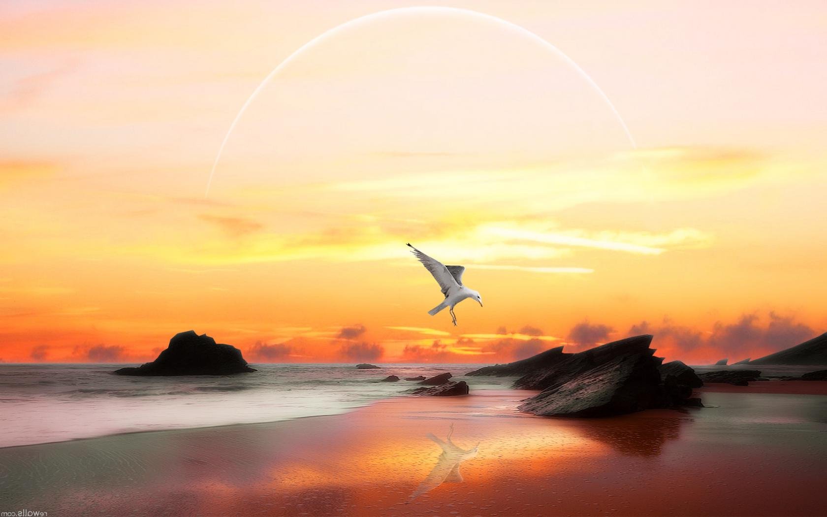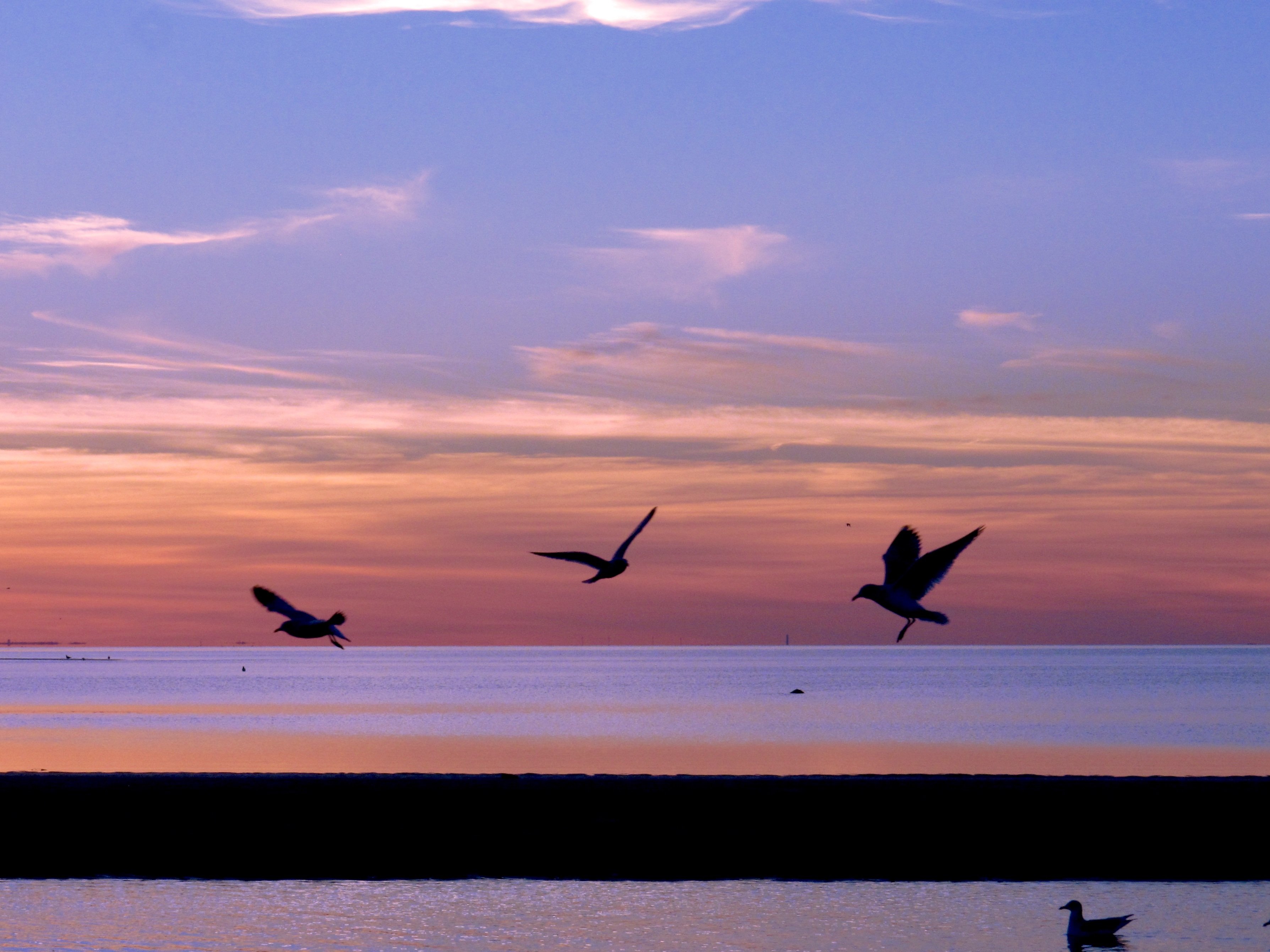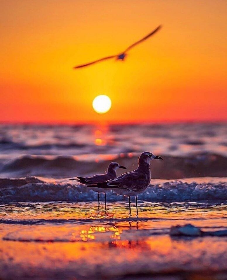 На картинке запечатлен волшебный закат над морем, окрашивающий небо в оттенки розового и оранжевого. Вдали виднеется контур птиц, парящих в воздухе, создавая красивый и живописный образ. Этот сюжет напоминает о спокойствии и красоте природы, оставляя ощущение умиротворения и восхищения перед величественным зрелищем. Картина морского заката с птицами - идеальное сочетание для тех, кто ценит красоту окружающего мира и хочет проникнуться атмосферой умиротворения и гармонии.