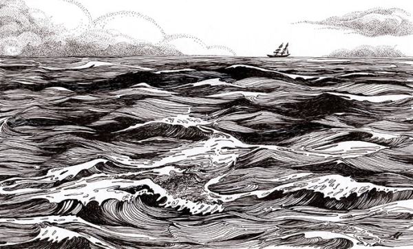 Нарисовать море черно белое