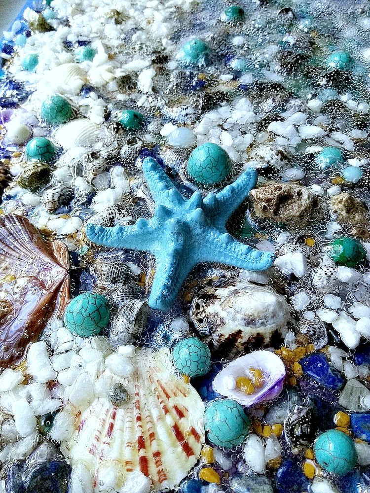![Морской пейзаж с ракушками]()