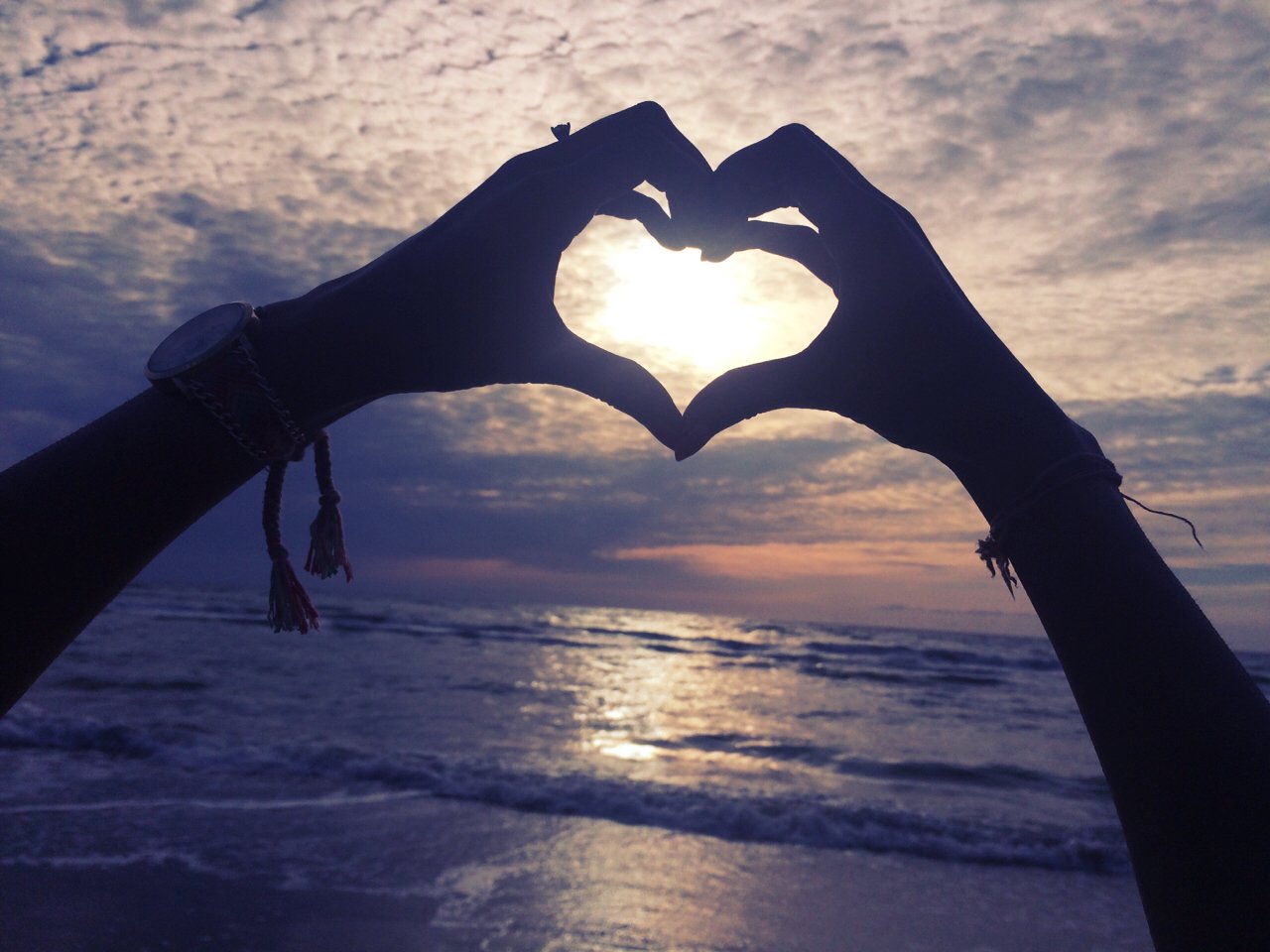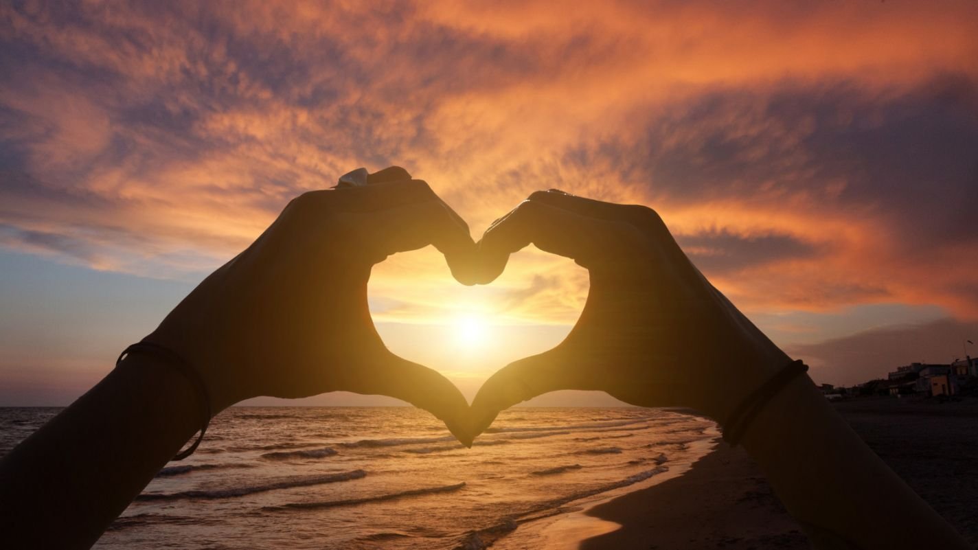 Сердце руками на закате