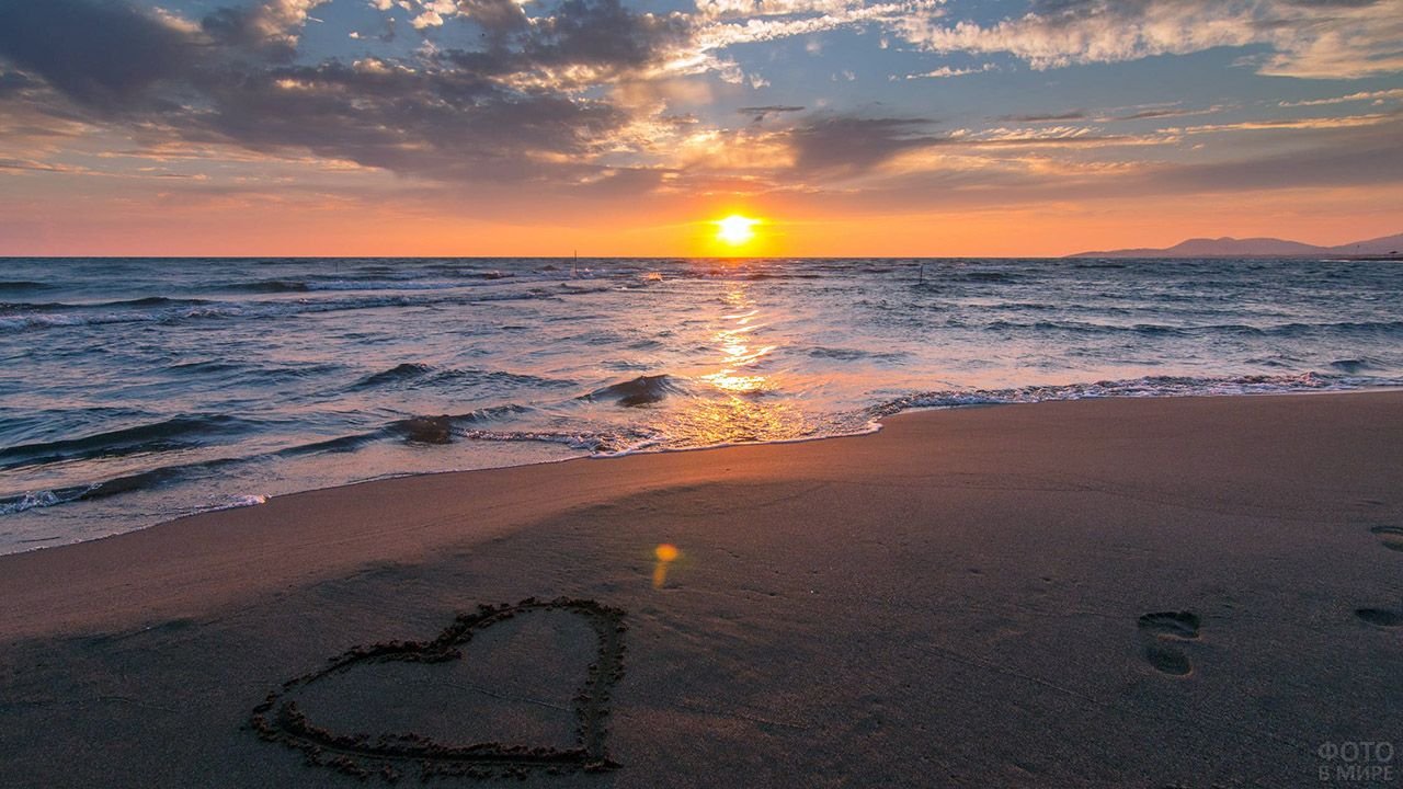 Сердце на песке у моря