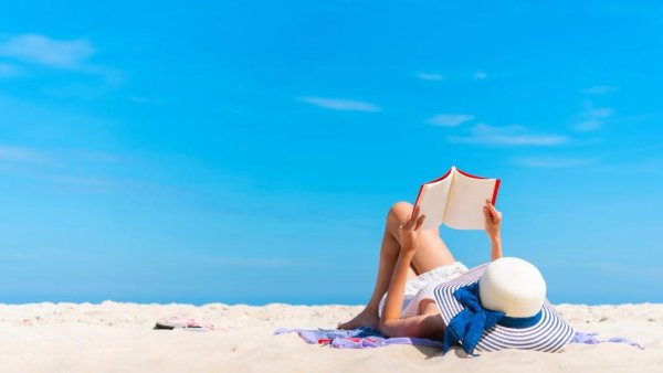 Девушка на пляже с книжкой