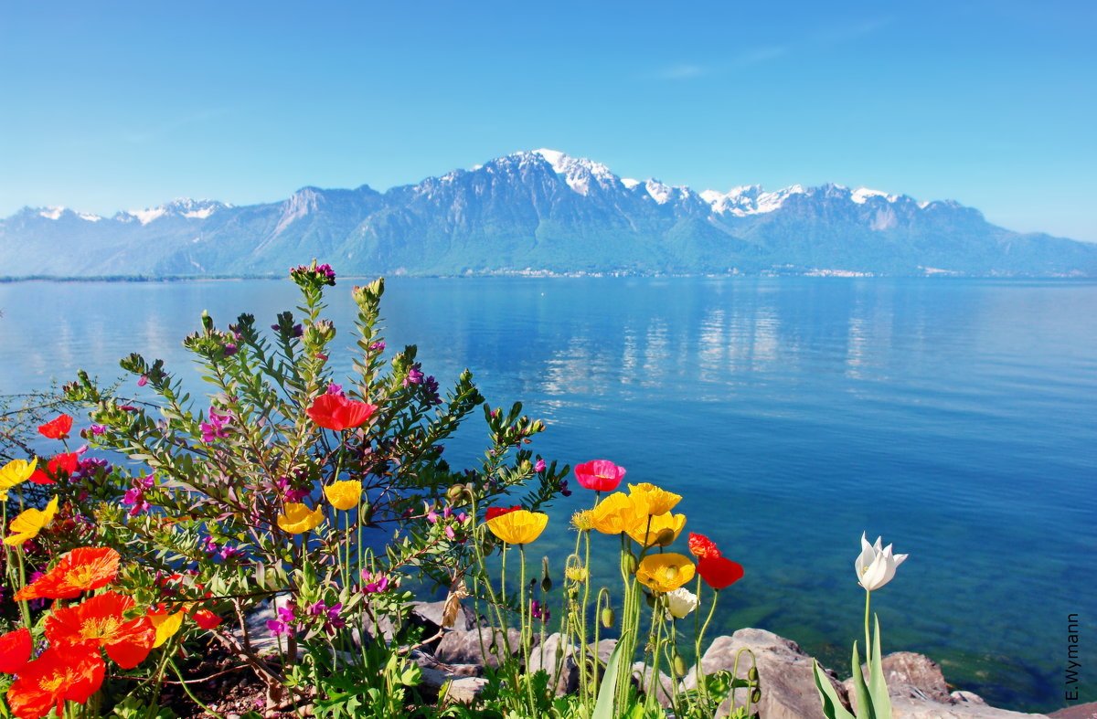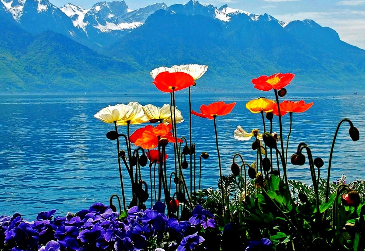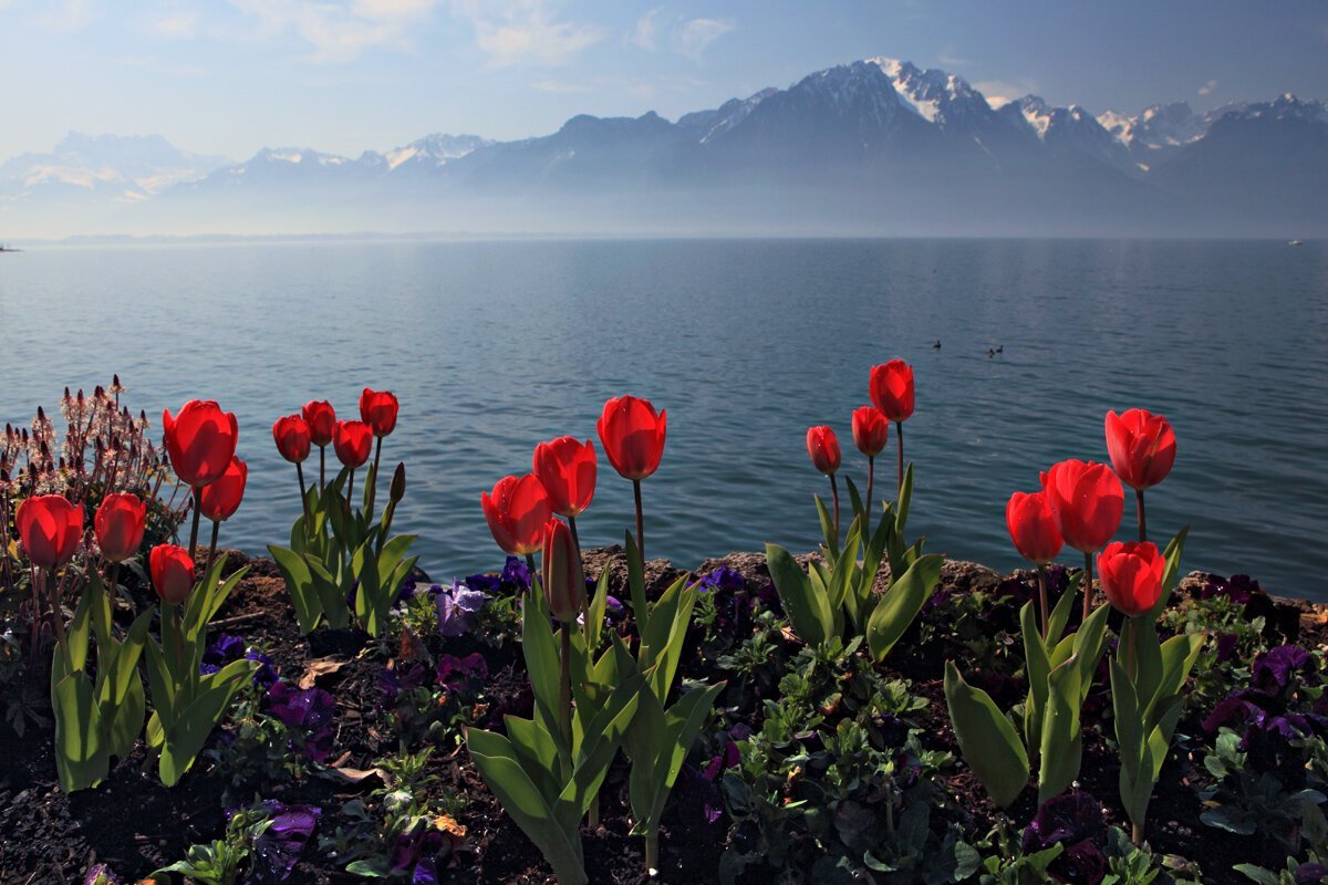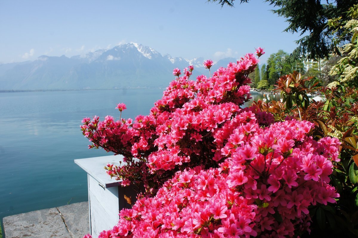 Женевское озеро горы цветы