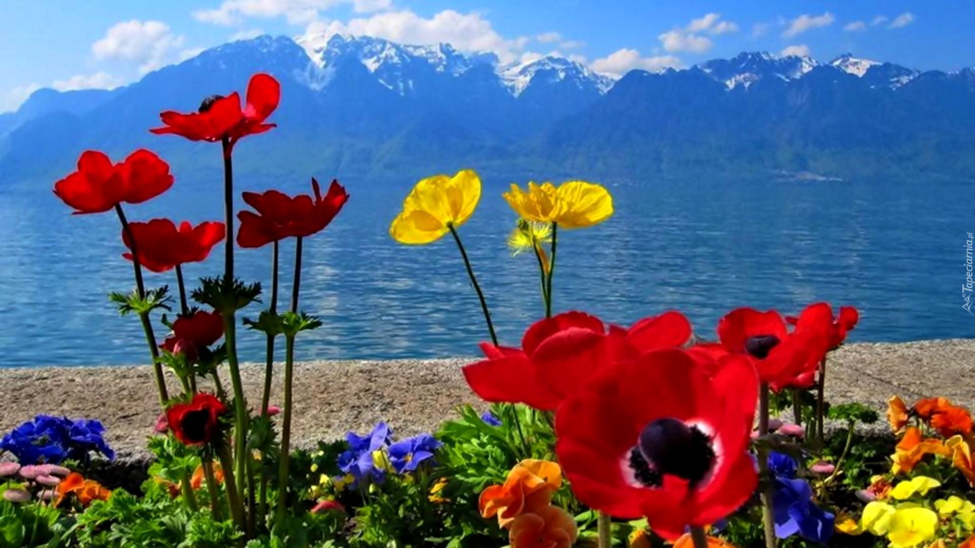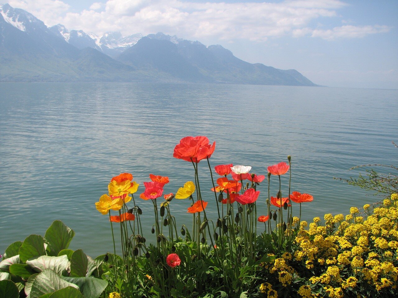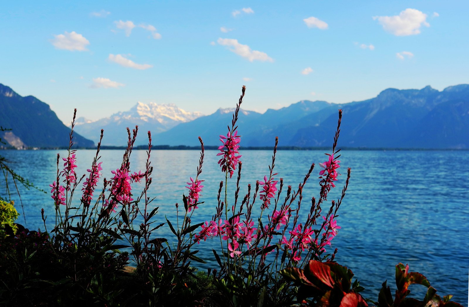 Женевское озеро горы цветы