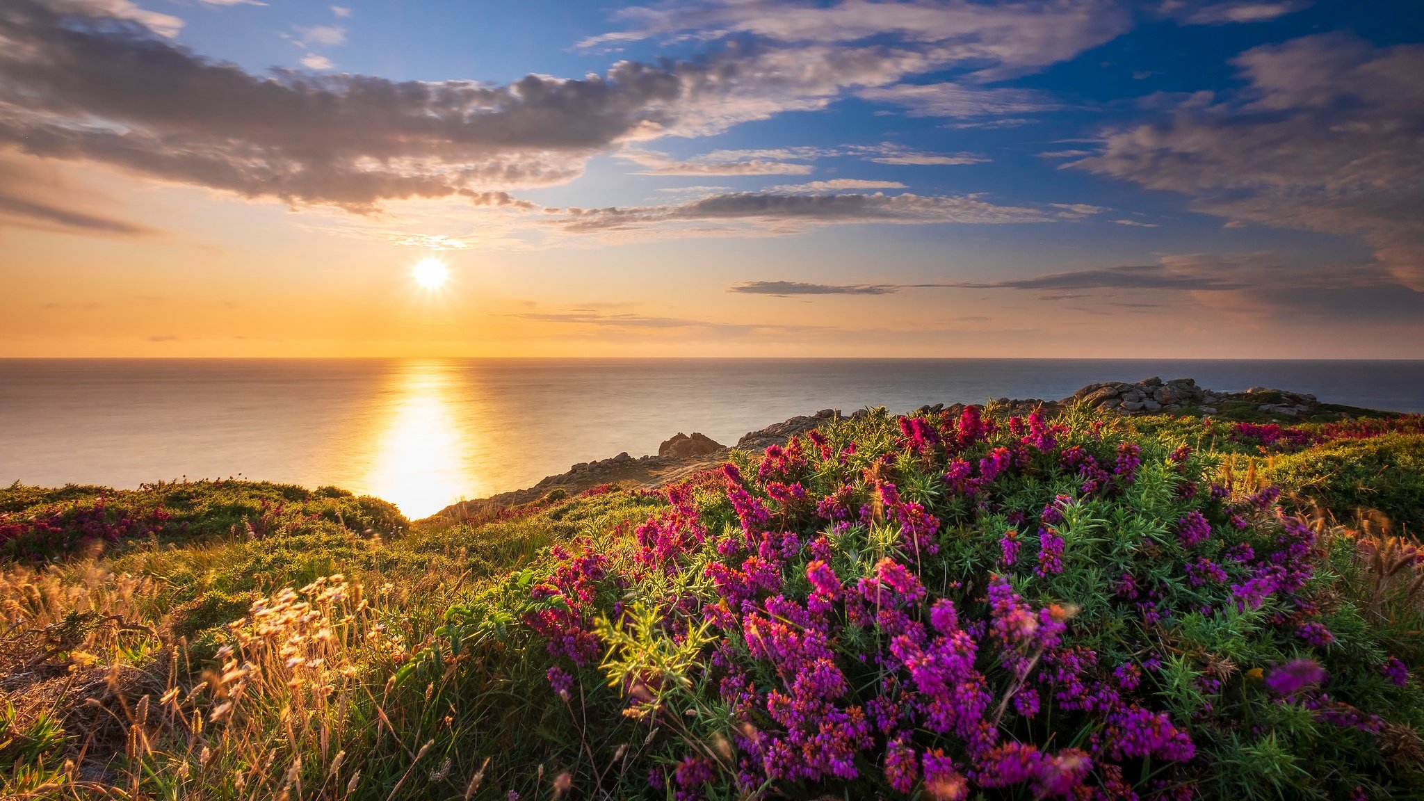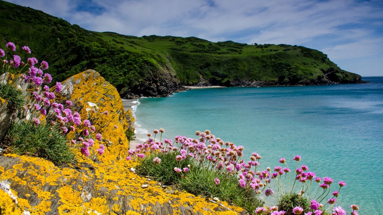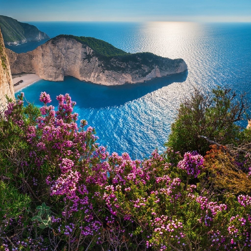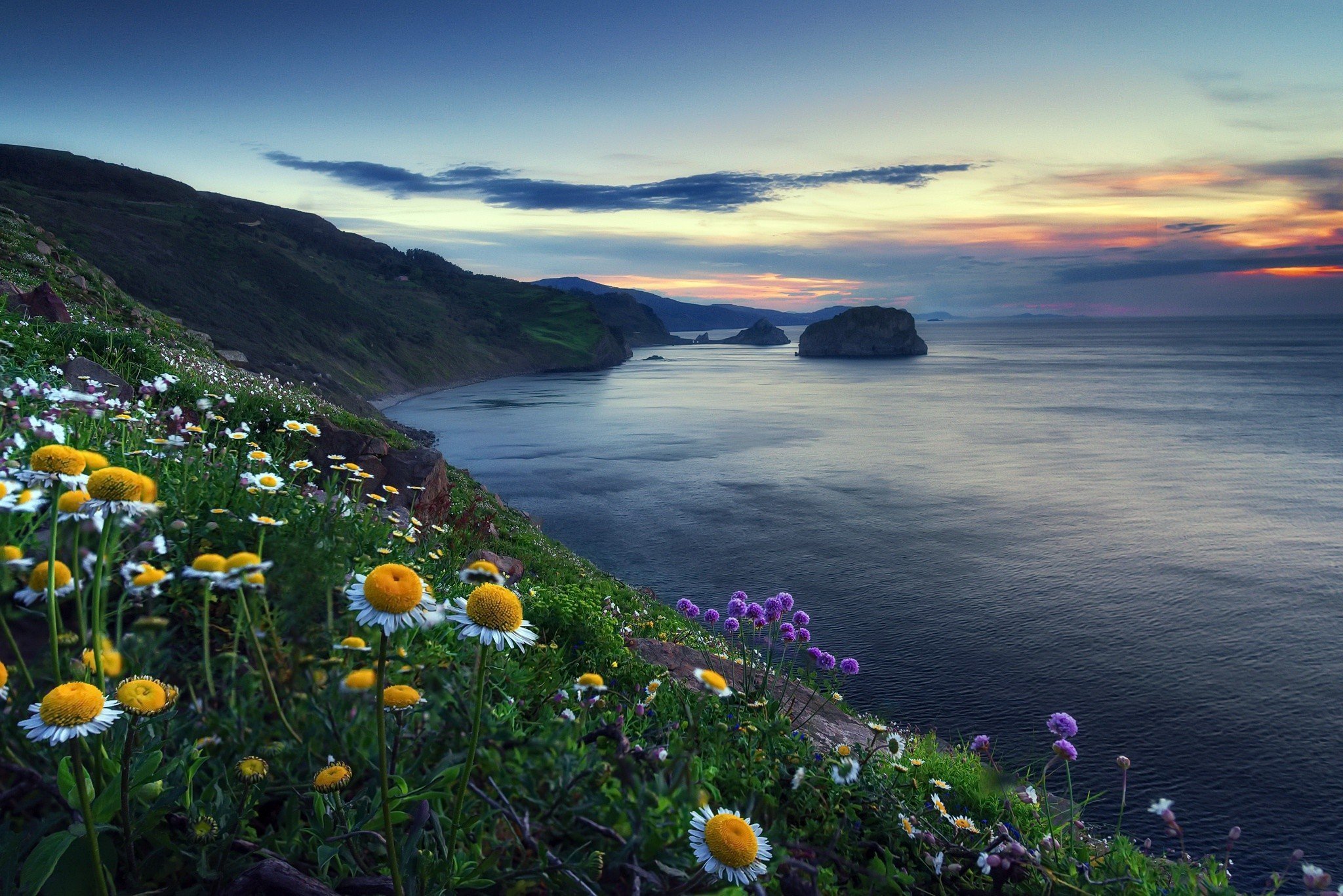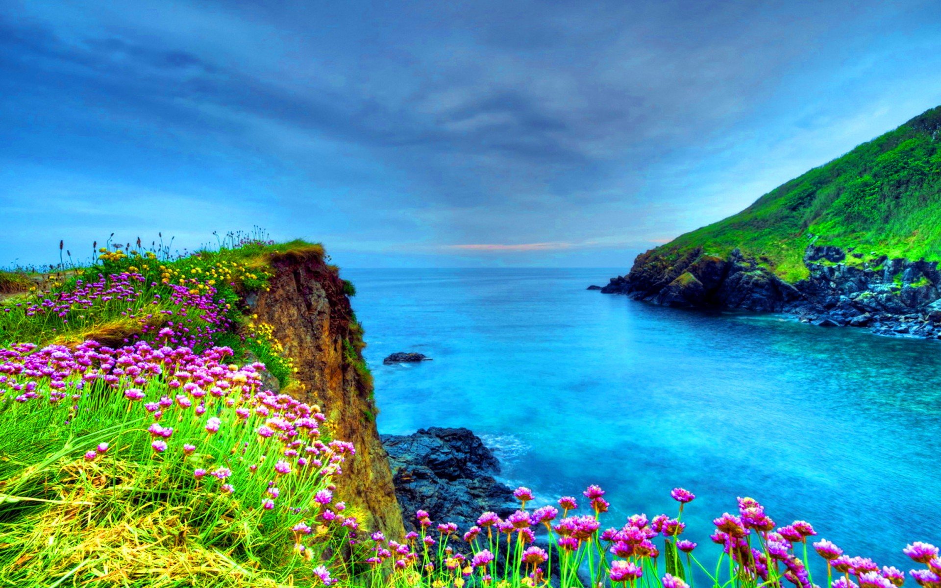 Море скалы цветы