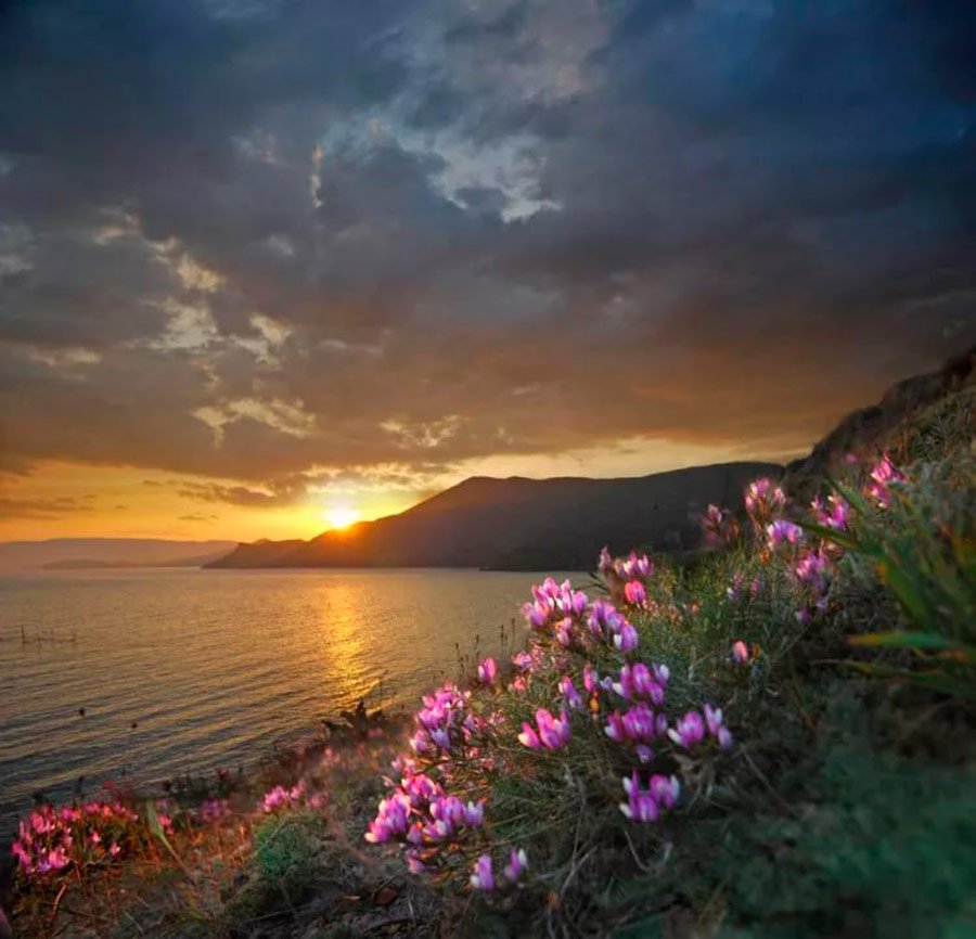 Море горы цветы