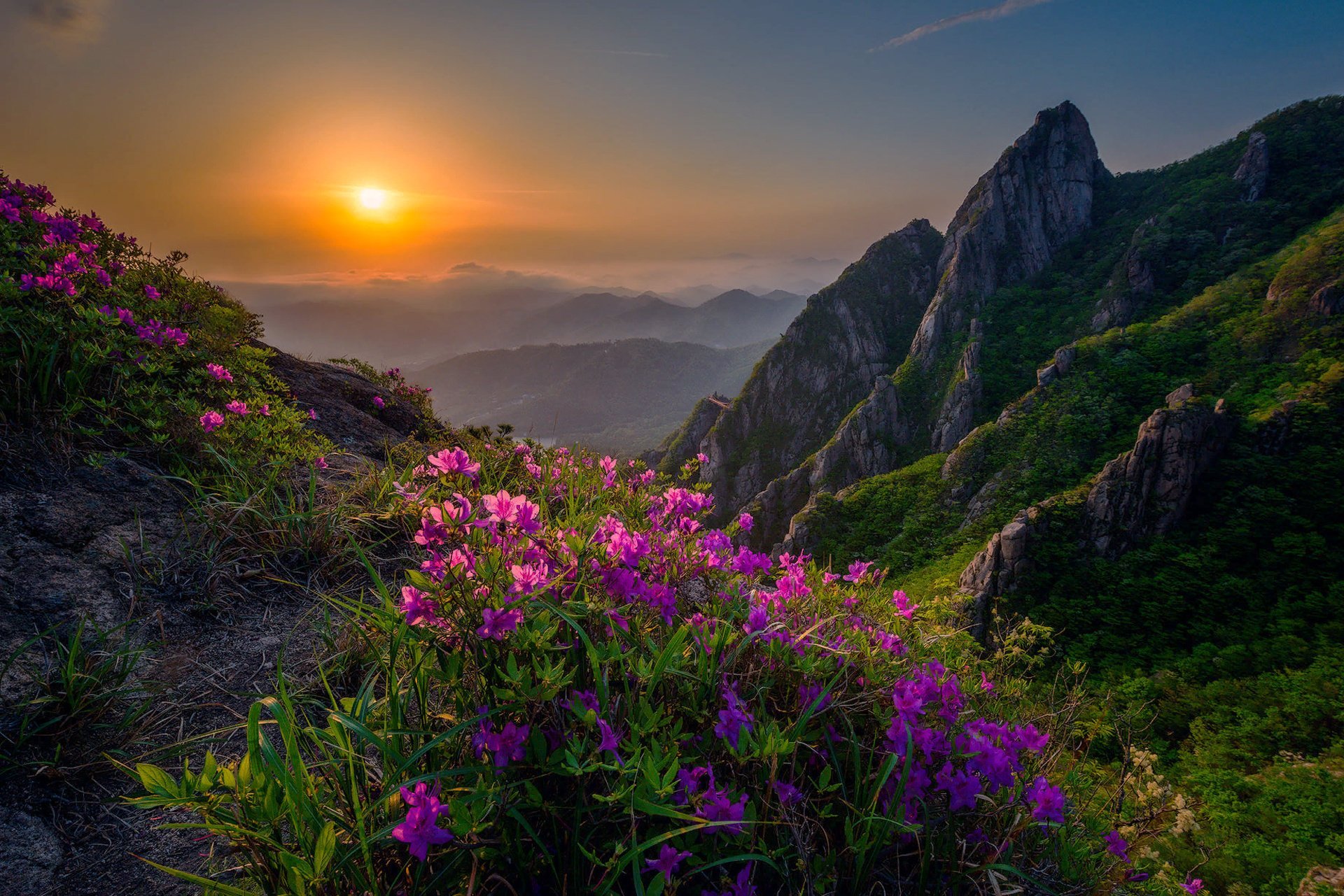 Закат горы цветы