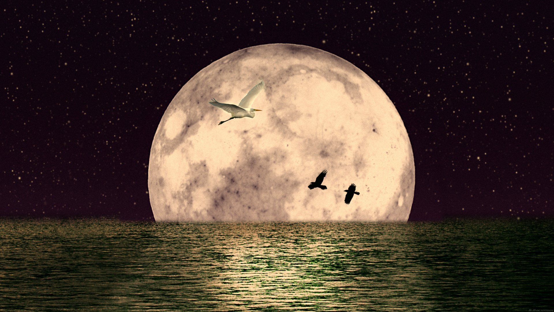 ![Полнолуние на море]()