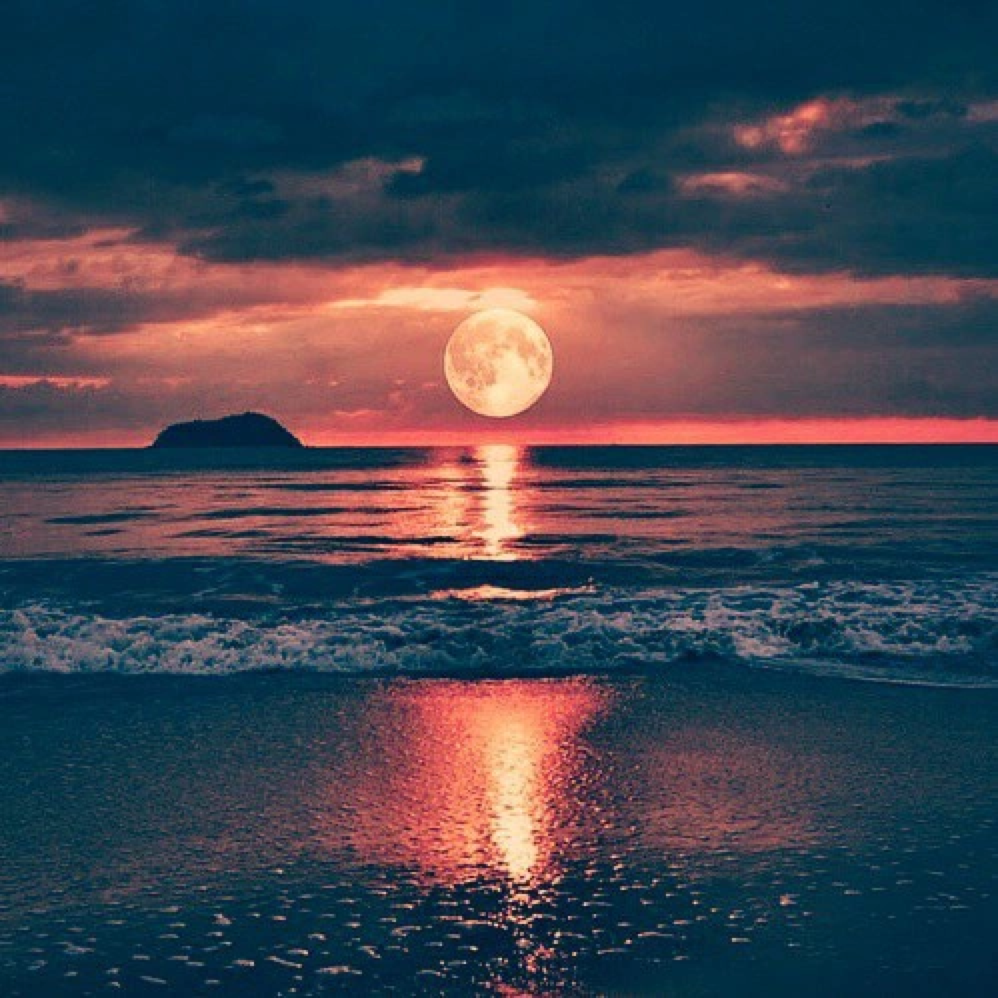 ![Закат Луны на море ночь]()