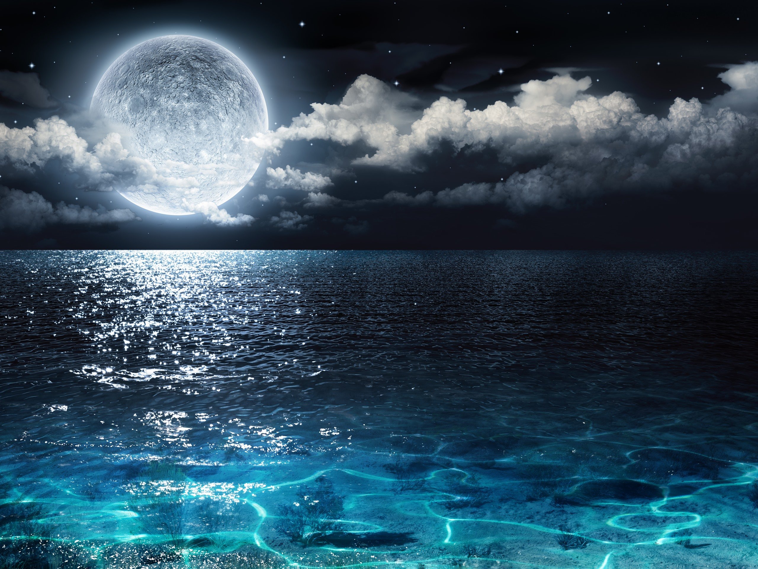 ![Луна звезды море]()