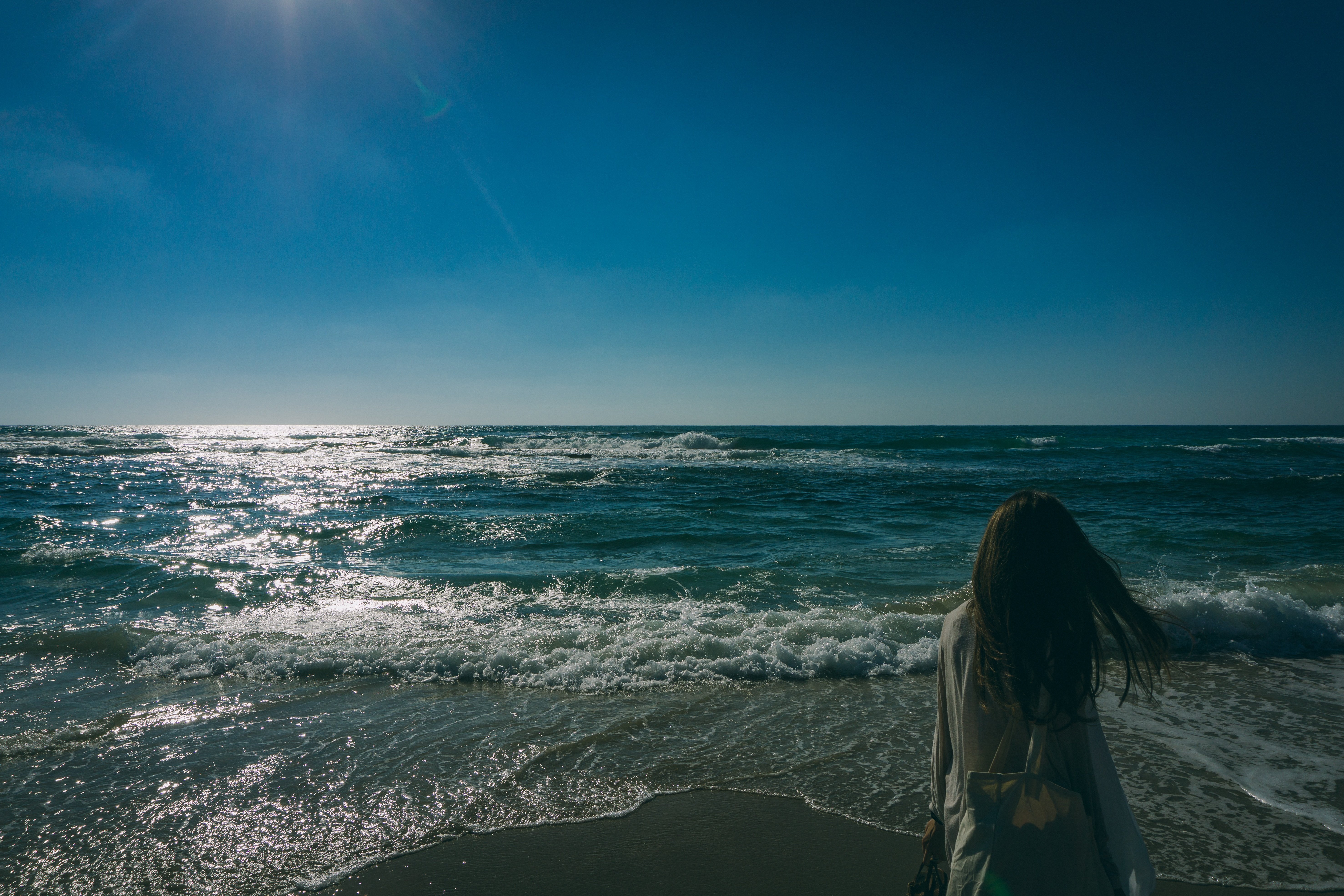 Девушка спиной к морю