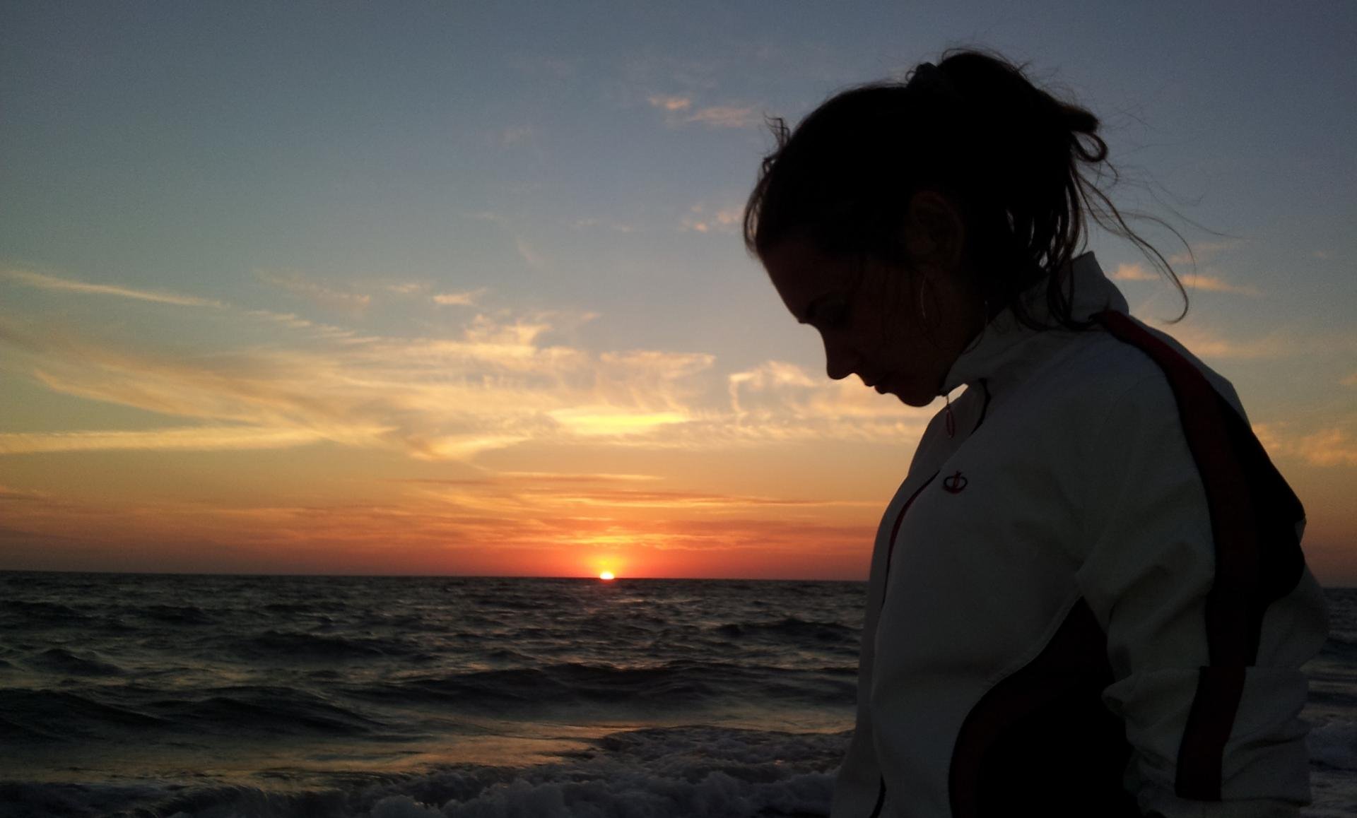 Девушка на берегу моря на закате