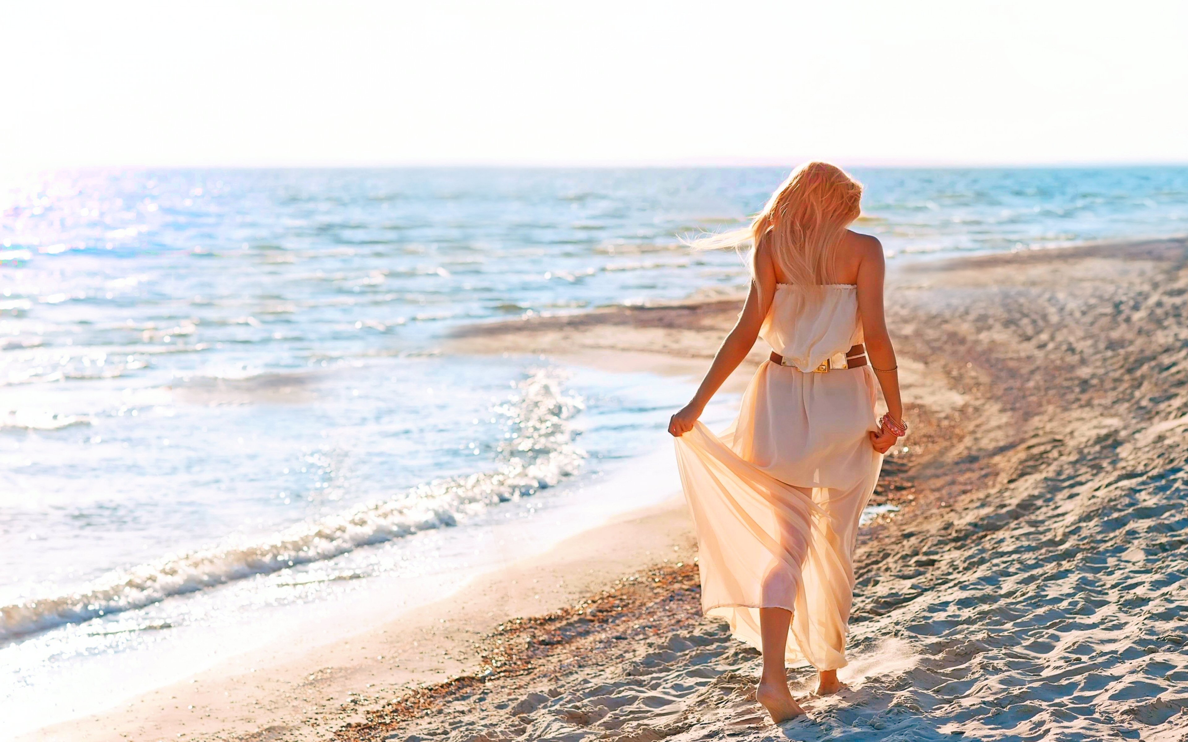 Девушка идет по берегу моря