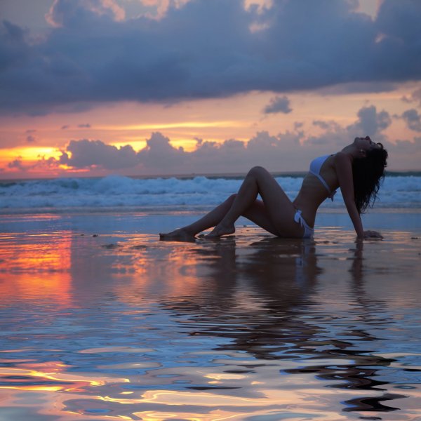 Девушка на пляже вечером