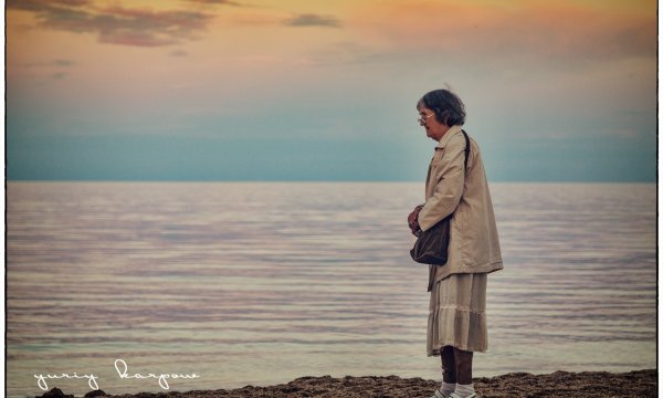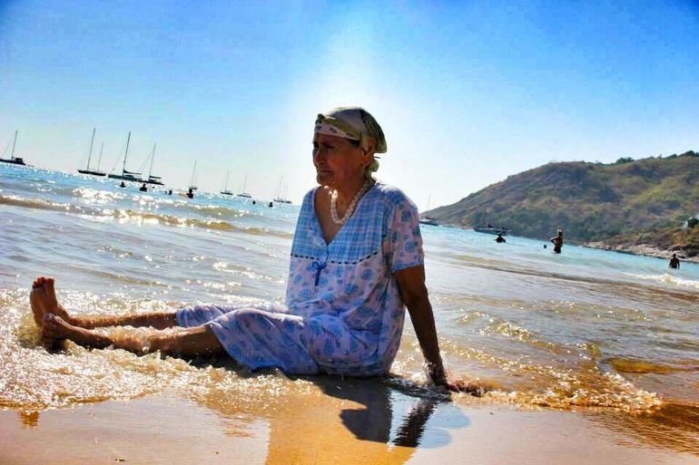 На картинке изображена живописная идиллия: старушка седых волос сидит на скамейке у моря, окруженная красивым пейзажем. Ее лицо выражает спокойствие и мудрость, а взгляд устремлен вдаль, словно она глядит в бесконечность океана. Морской бриз ласкает ее щеки, а волны слегка касаются ног. Эта картина напоминает о вечности времени, о том, как незыблемыми остаются природа и человеческие эмоции перед величественным миром природы.